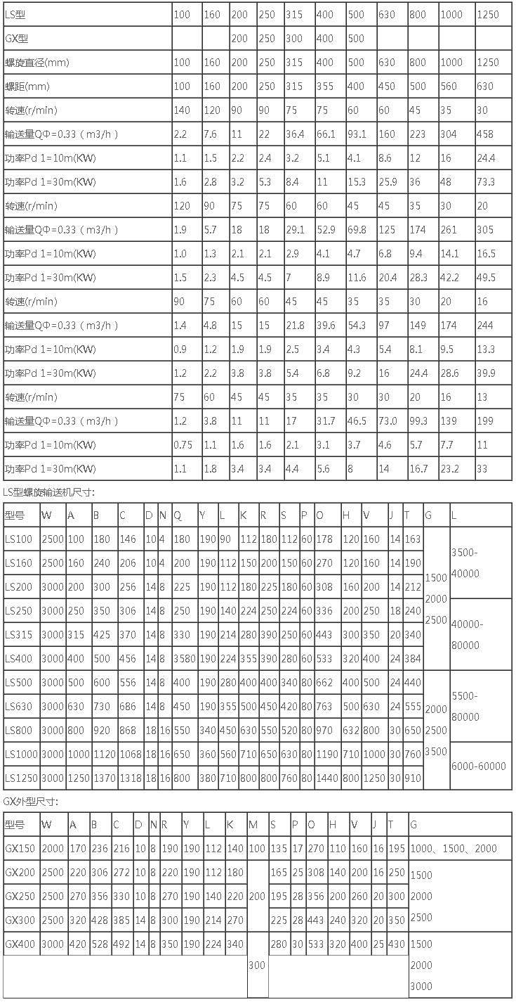 客戶選型注意事項(xiàng):螺旋機(jī)不宜輸送易變質(zhì)的、粘性大的、易結(jié)塊的物料,因?yàn)檫@些物料在輸送時(shí)會(huì)粘結(jié)在螺旋上,并隨之旋轉(zhuǎn)而不向前移動(dòng)或者在吊軸承處形成物料的積塞,而使螺旋機(jī)不能正常工作。LS型螺旋機(jī)螺旋直徑從200毫米到500毫米,共有五種規(guī)格,長(zhǎng)度從4米到70米,每隔0.5米一檔,選型時(shí)符合標(biāo)準(zhǔn)公稱長(zhǎng)度,特殊需要可在選配節(jié)中另行提出。